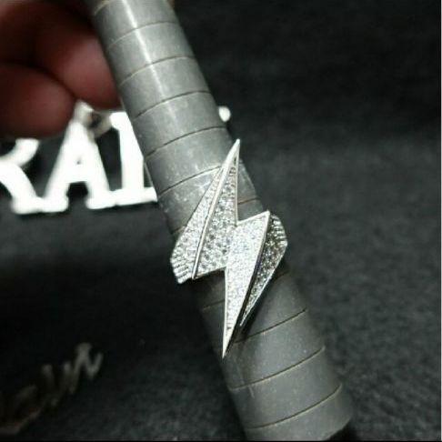 シャープなデザインの、イナズマ 稲妻 型リング