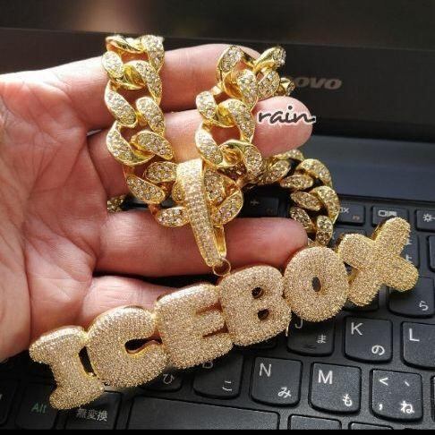 【チェーン付き】ICEBOX バブル文字 展示品 ゴールド イニシャルペンダント