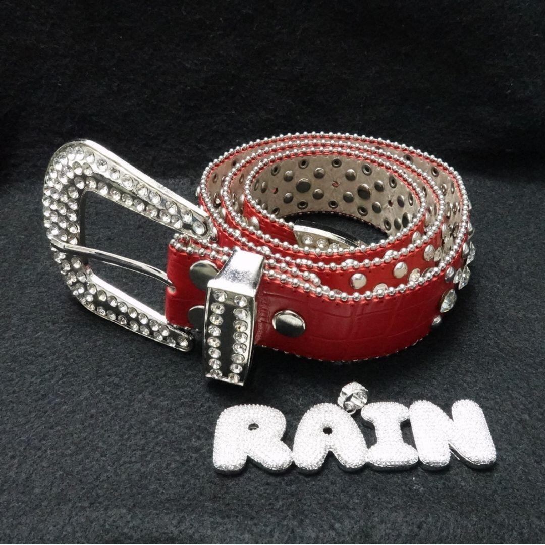 【HG】クロコ調 レッド ブリンブリン ベルト