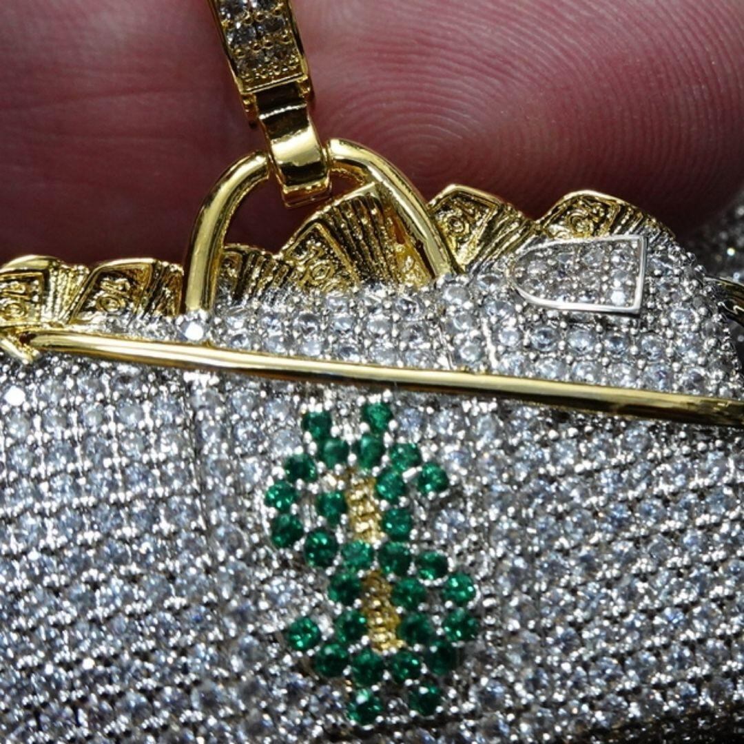 お札のどっさり詰まった、銀行バッグ を モチーフにした、ユニークなトップ