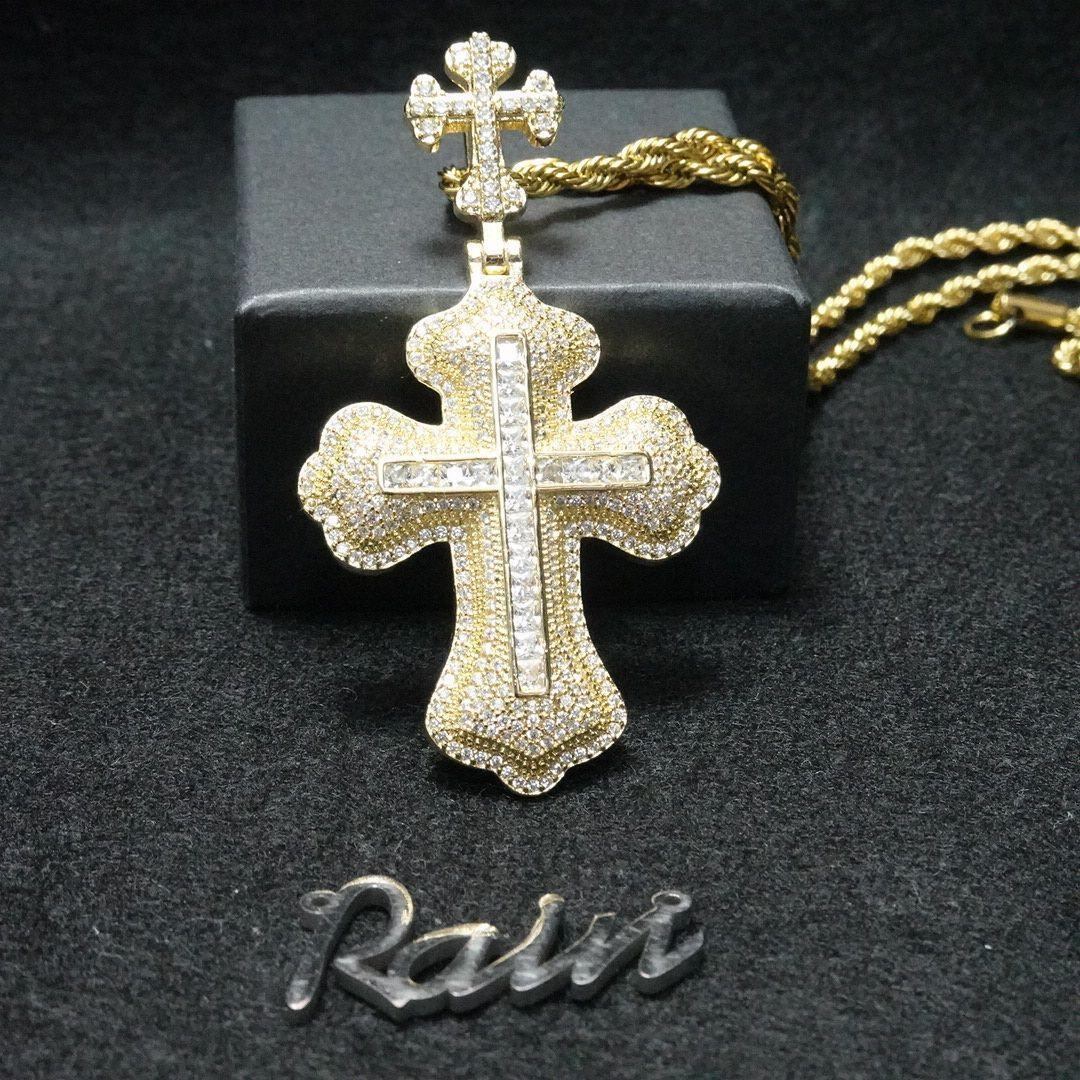 中心に大粒のジルコニア 、クロス全体にも無数の石を配し、ゴージャスです!
